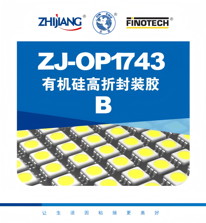 本品为双组份LED 低折射率封装硅胶,ZJ-OP1743A/B 由A、B 两组分组成,属于1.41 折射率硅胶,可应用于SMD 封装、COB 封装、Molding 成型以及集成封装等。本品电器绝缘性能,对金属(铜,银,铝)等金属材料和PPA 附着力强,并且热稳定性卓越,可较长时间耐250℃高温。可在-60~+220℃长期使用。且具有优异的抗热老化性能以及可见光范围内穿透性能。