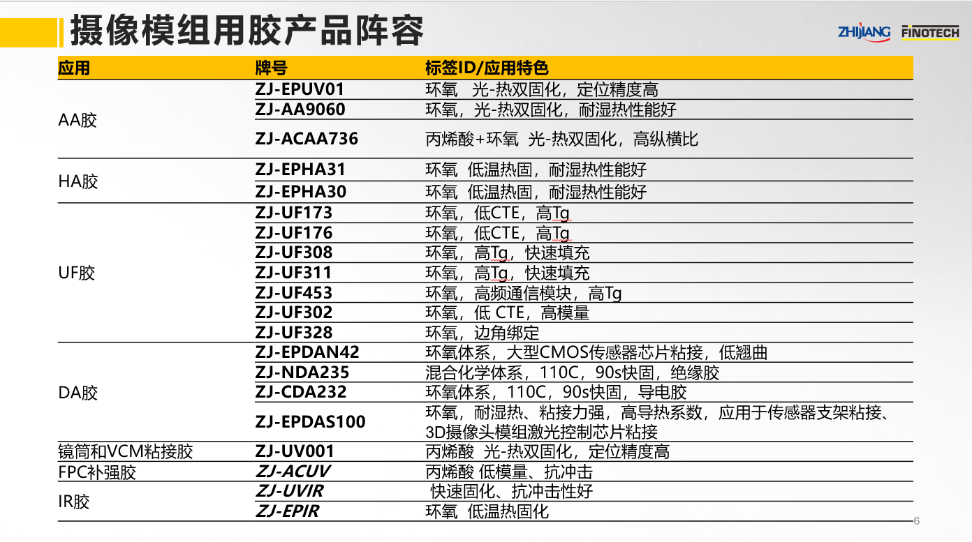 之江公司为摄像模组粘接固定推出了如下系列产品: